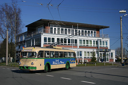 Der 1959 erbaute Obus 59 wurde von den Firmen Uerdingen und Henschel, für den mechanischen Teil und Kiepe, für den elektrischen Teil, gebaut. Er wurde am 18.12.1959 indienst gestellt. Die endgültige Ausmusterung erfolgte am 23.02.1984. Bis dahin trug er das Kennzeichen SG-2201. Danach, 1986, verschlug es den Obus nach Aachen wo er bei einem Bussammler ein Obdach fand. Am 17.06.1999 wurde er vom Obus-Museum wieder zurück gekauft und aufwendig restauriert. Seit 2008 ist “der 59” auch für private Sonderfahrten buchbar.